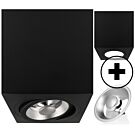 Aufbaustrahler Palermo quadratisch Schwarz + GU10 Pegasi AR111 12W 2700K dimmbar